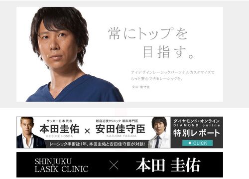 レンコンの記憶において、 レーシックの宣伝が一番盛り上がったのはサッカーの本田選手が新宿近視クリニック(元SBCクリニック)にて手術を受けたくらいと記憶しています。 この手術を行ったのは、安田佳守臣先生という眼科専門医です。 安田先生の名前は日…