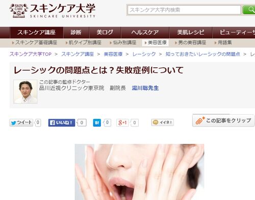 こんにちは!レンコンです。 ただいま集団提訴の対象となっている品川近視クリニックが、たくさんレーシックに関する記事を載せているスキンケア大学と言うサイトがあります。 レーシックの問題点とは?失敗症例について レーシックの問題点とは?失敗症例に…